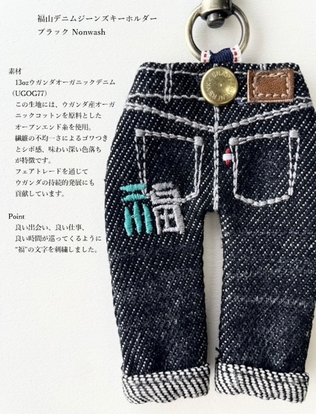 福山デニム ジーンズキーホルダー(ブラック NonWash)