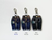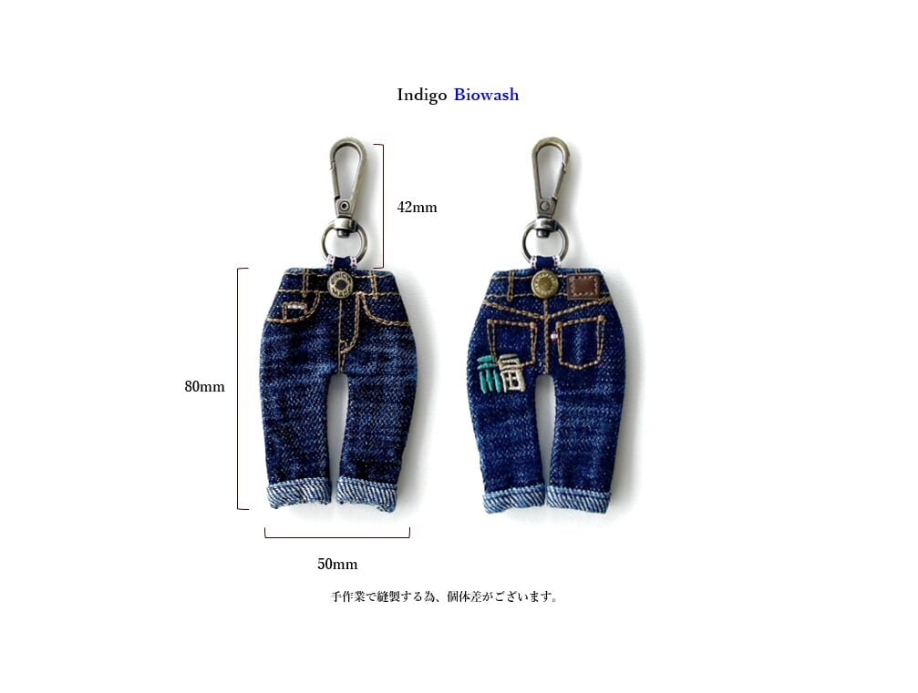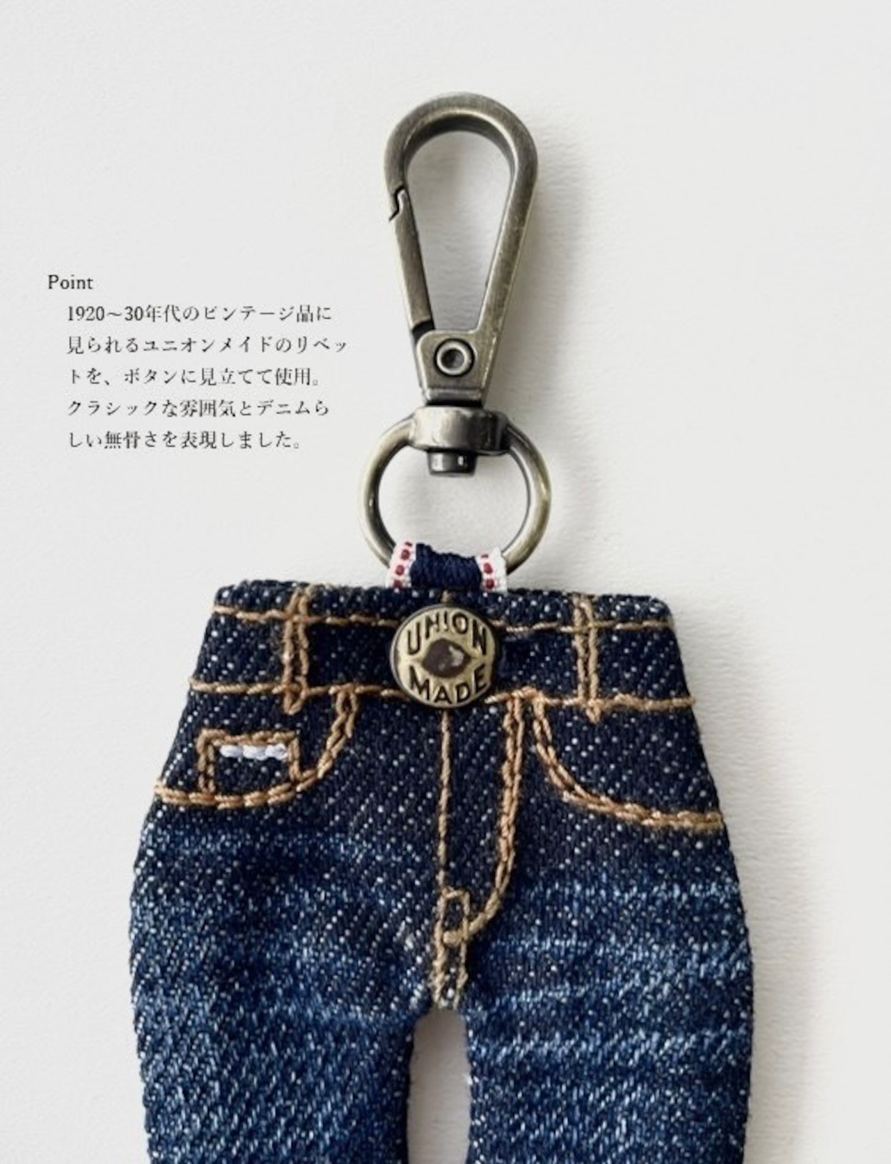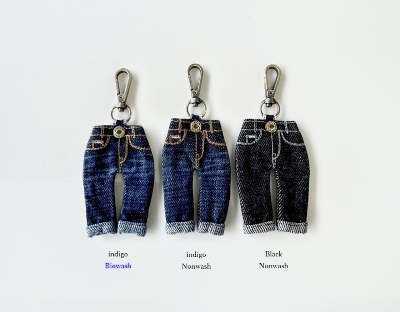 篠原テキスタイルが手がける13ozウガンダオーガニックデニムを使用した、ジーンズ型キーホルダーです。