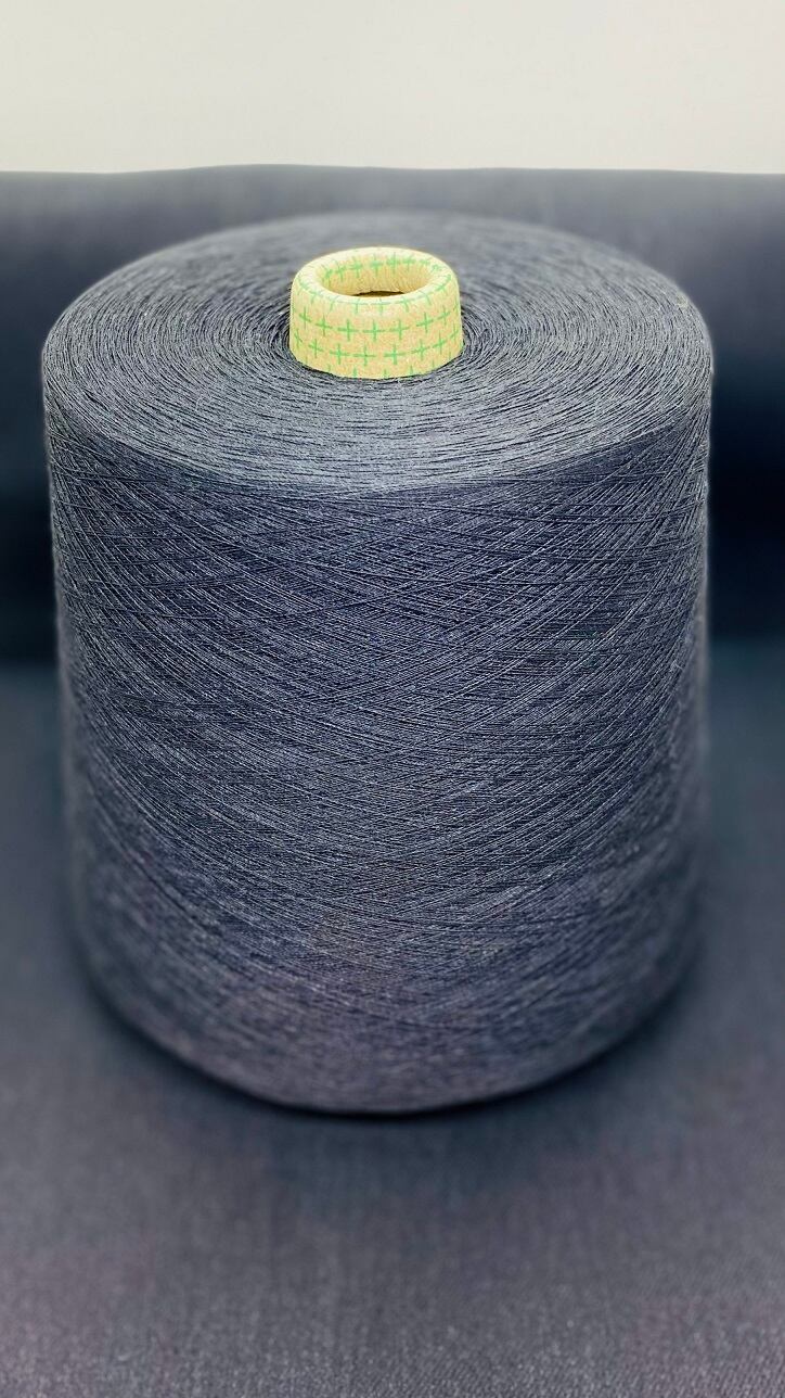 この糸はペットボトルをリサイクルし、さらに何色かの色を付けた状態で繊維を作り、MVSという特殊な糸を作る機械で作られた糸です。